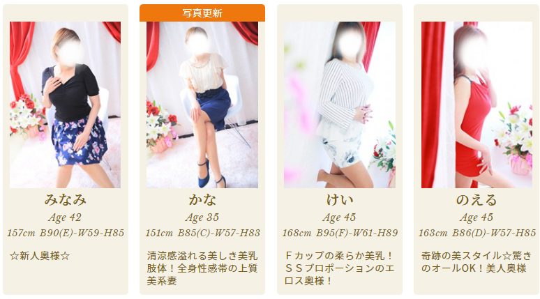 松本人妻援護会の公式サイトで分かる年齢層や写真の雰囲気を見て、30代~40代の人妻さんと遊ぶのが好きな人にとっては選択肢が多いと感じました。