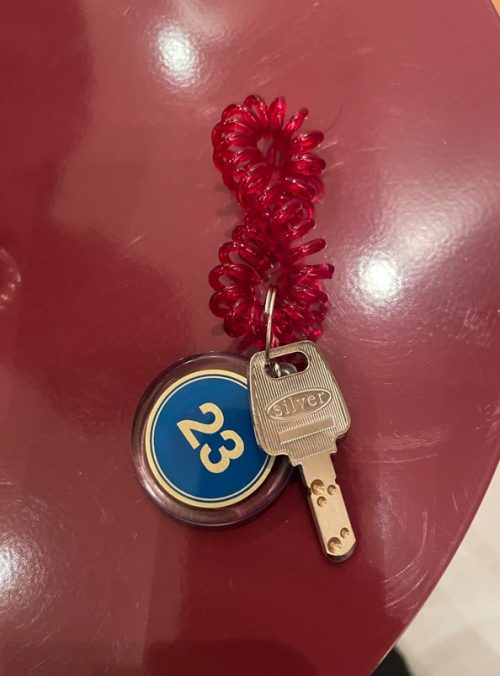 受付後、ロッカーキーを渡されます。この番号でどのコースを選択したかなど管理されます。