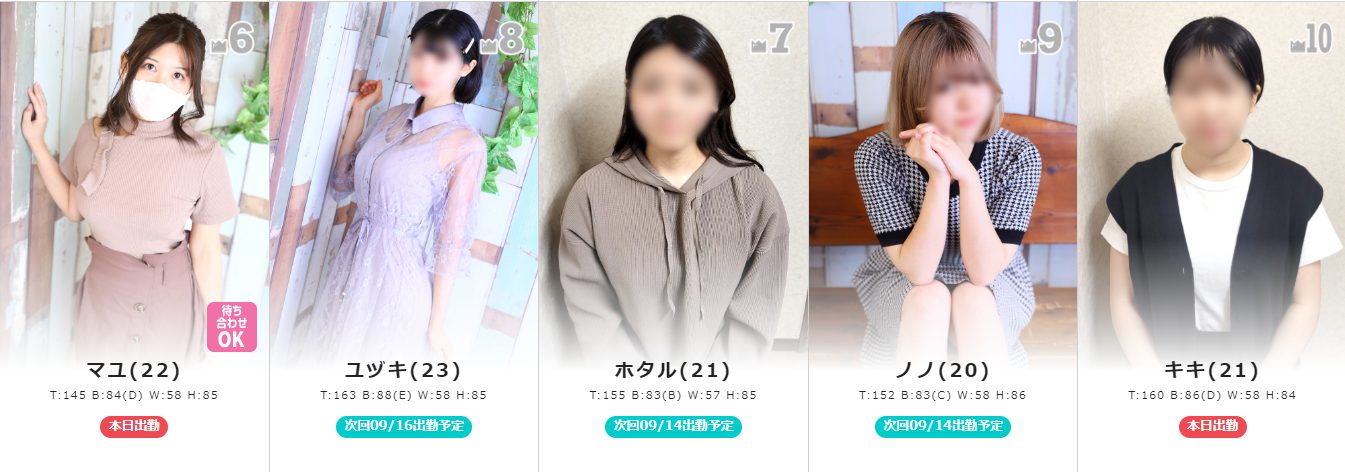 1日の女の子の出勤数ですが、だいだい5人から多くて8人ぐらいというところでしょうか。