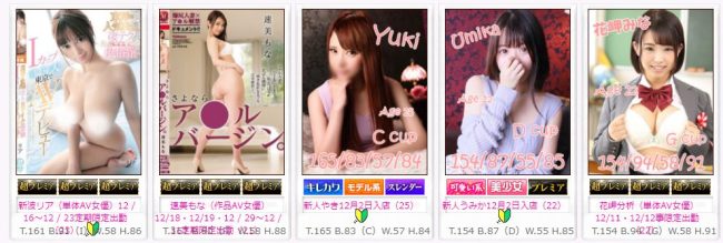 AV女優以外では、スタイル抜群の嬢・ほんわかとした癒し系の嬢が多いですね。