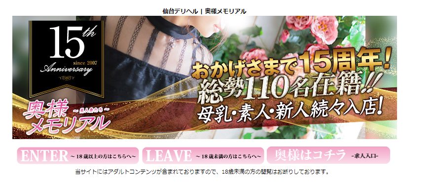 仙台の奥様メモリアルは、仙台市発の人妻系デリヘルです。