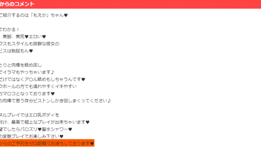 女の子のプロフィールの店長からのコメントに『ゼロ距離でお待ちしております』と記載されていたら、その子はNSもしくはNNに対応しています。