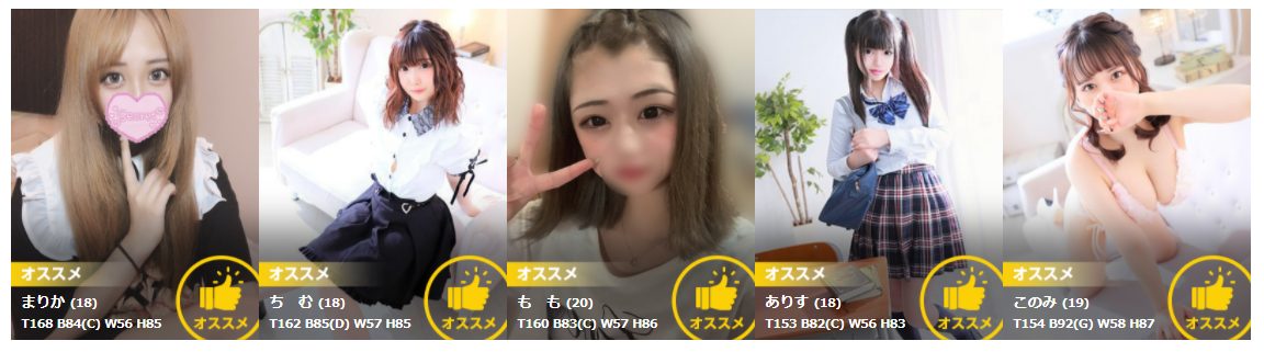 18歳~19歳の高校を卒業して間もない嬢が非常に多いので、このエリア内ではトップクラスの人気を誇っています。